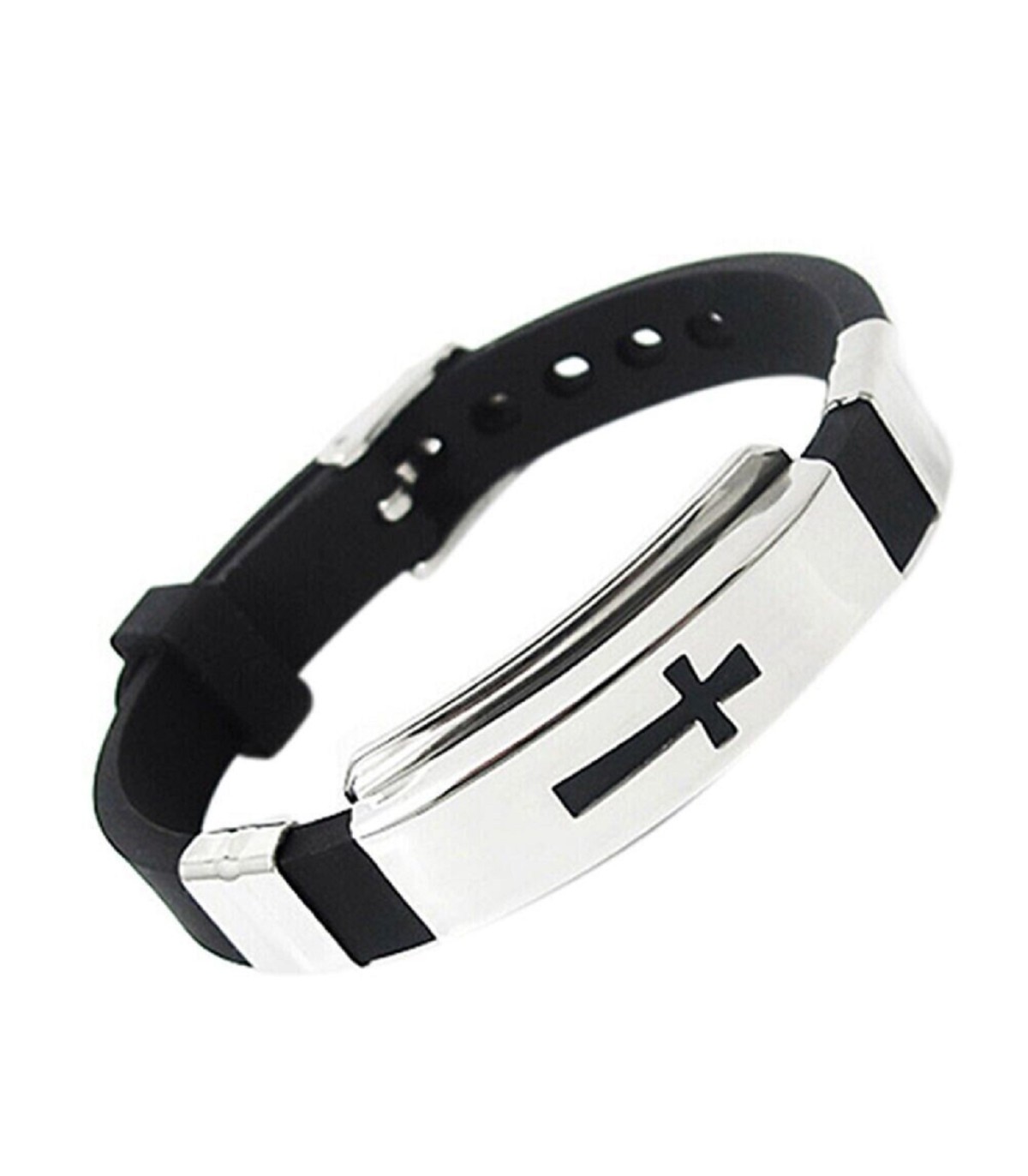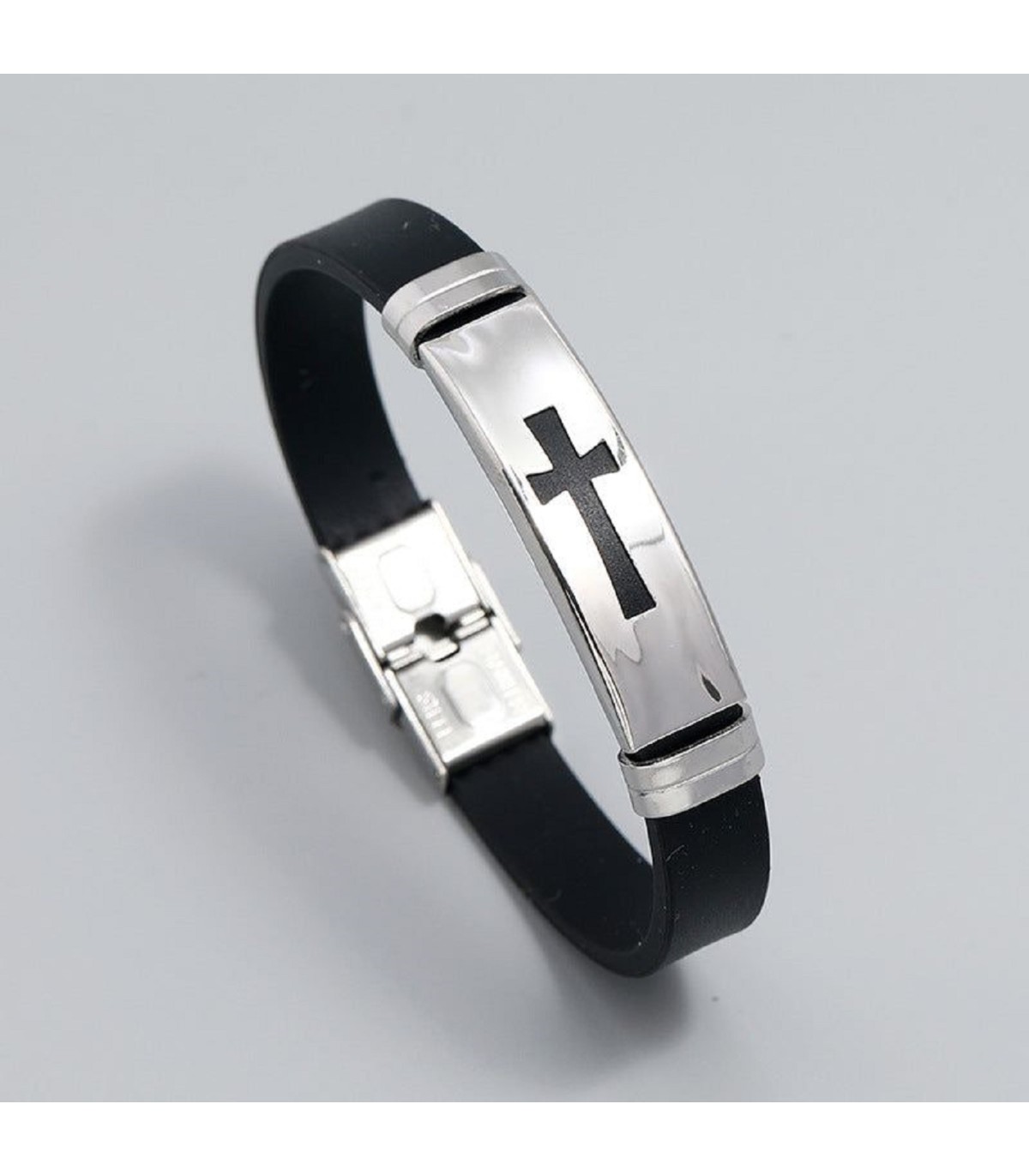 Armband "kors" med enkellåsning. I rostfritt stål och armband i slitstark silikon. Tidlös design för dig som hittat tron och tar med den vart än du vandrar. Att bära ett kors armband är mer än bara mode. Det är ett sätt att berätta din egen historia. Med så många alternativ att välja mellan kan du verkligen skapa något som är unikt för dig själv eller någon du älskar. Så ge dig ut på jakt efter det perfekta armbandet – din stil väntar på att bli upptäckt!