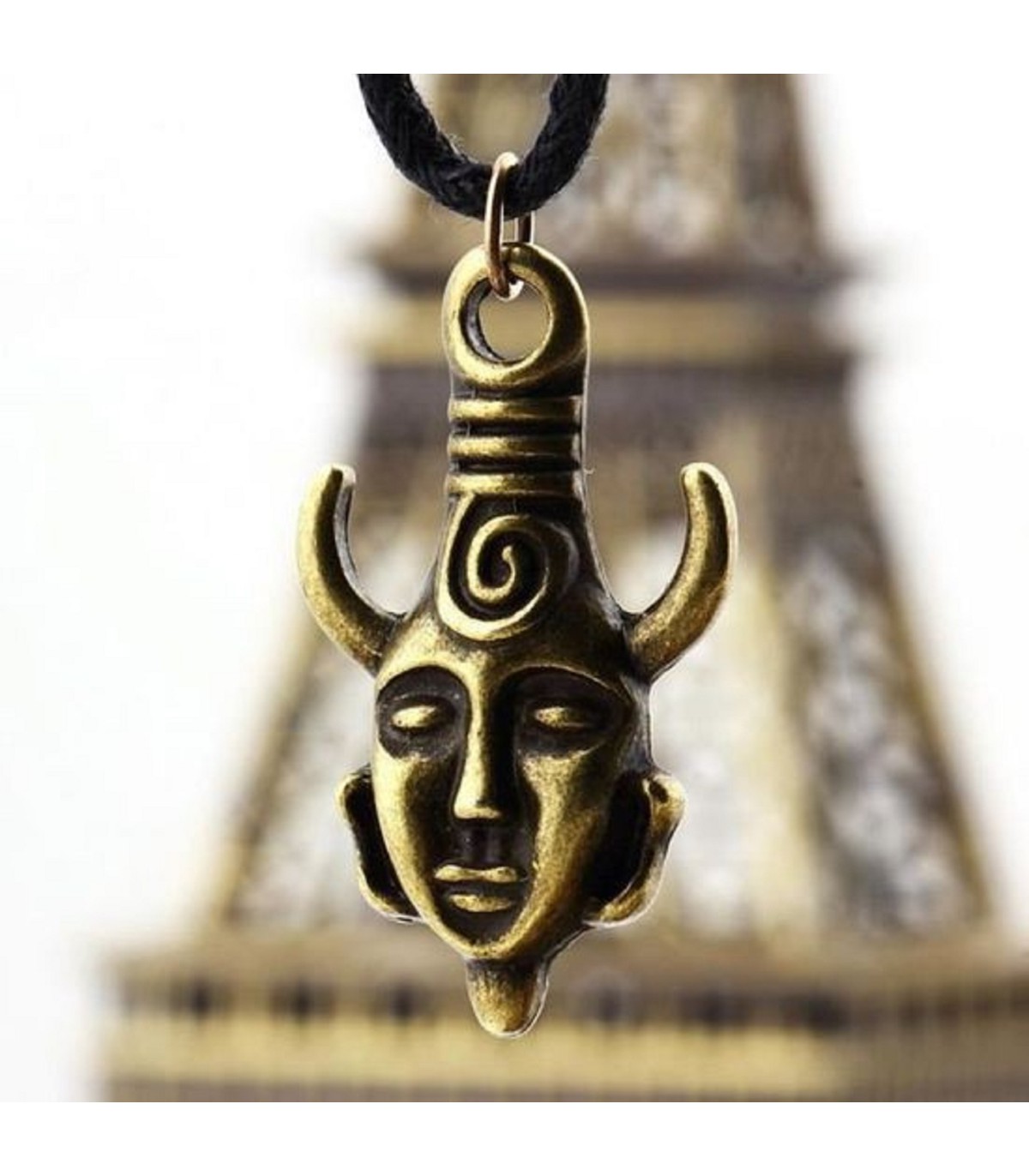 Halsband för herrar med ett magiskt ansikte med ursprung från Sydafrika. Läderband runt hals med karbinlåsning för enkel fastsättning. Ansikte som symbol sägs ge bärarenmagiska goda krafter. Enligt berättelserna hade detta halsband en förmåga att ge sin bärare insikt och visdom, samt en djupare förståelse för livet och naturen.